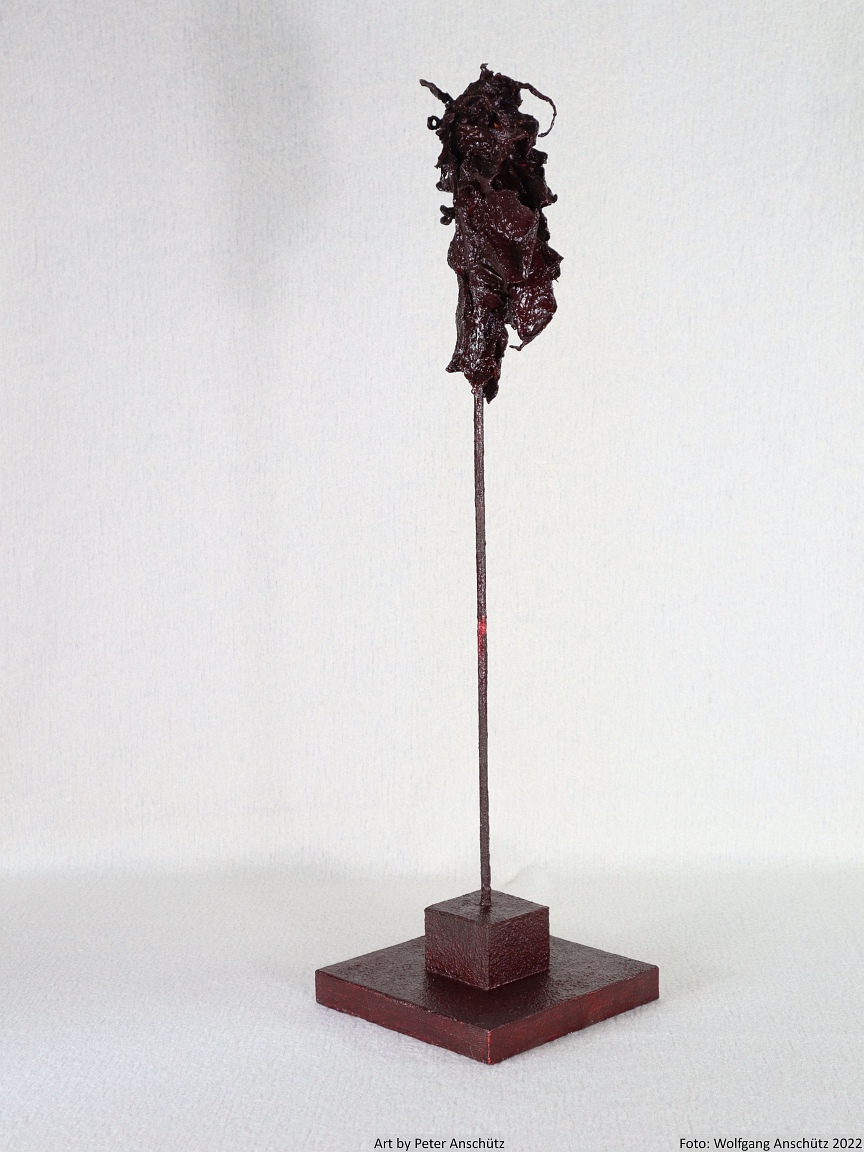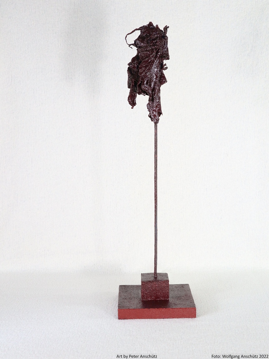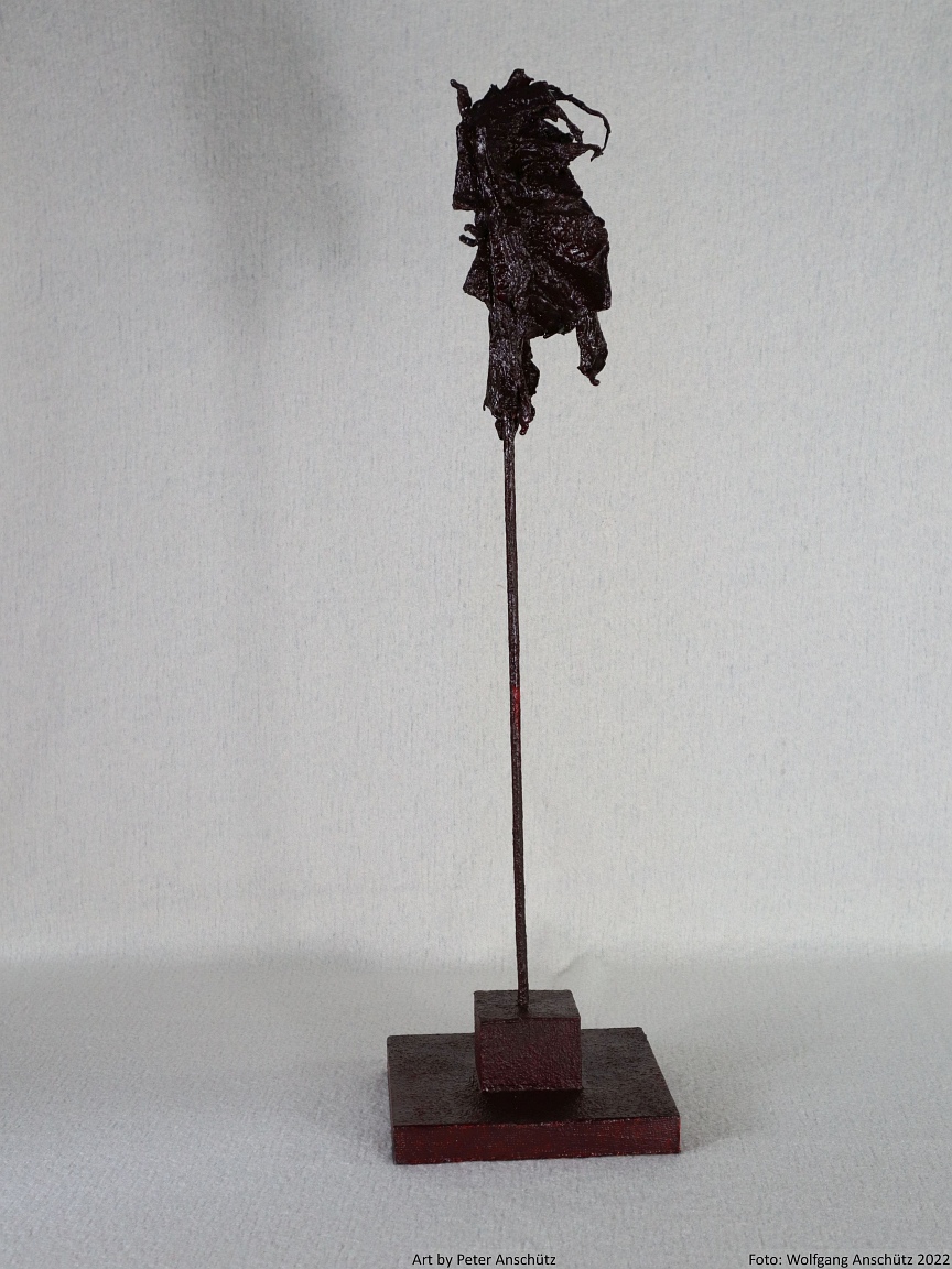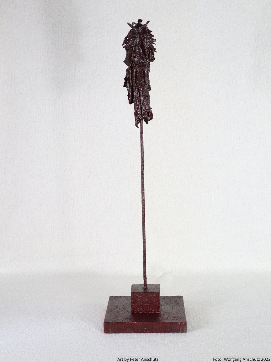 Holz, Eisendraht, Gazegewebe mit Acrylfarbe versteift