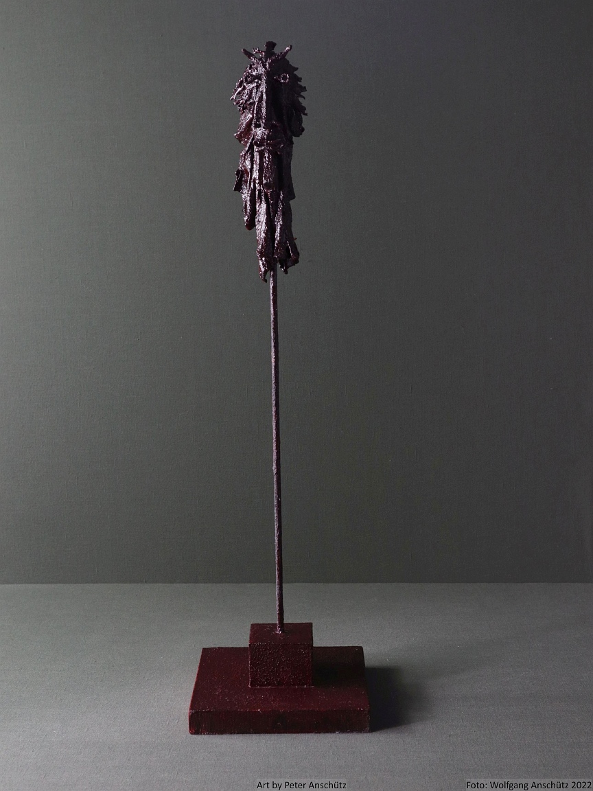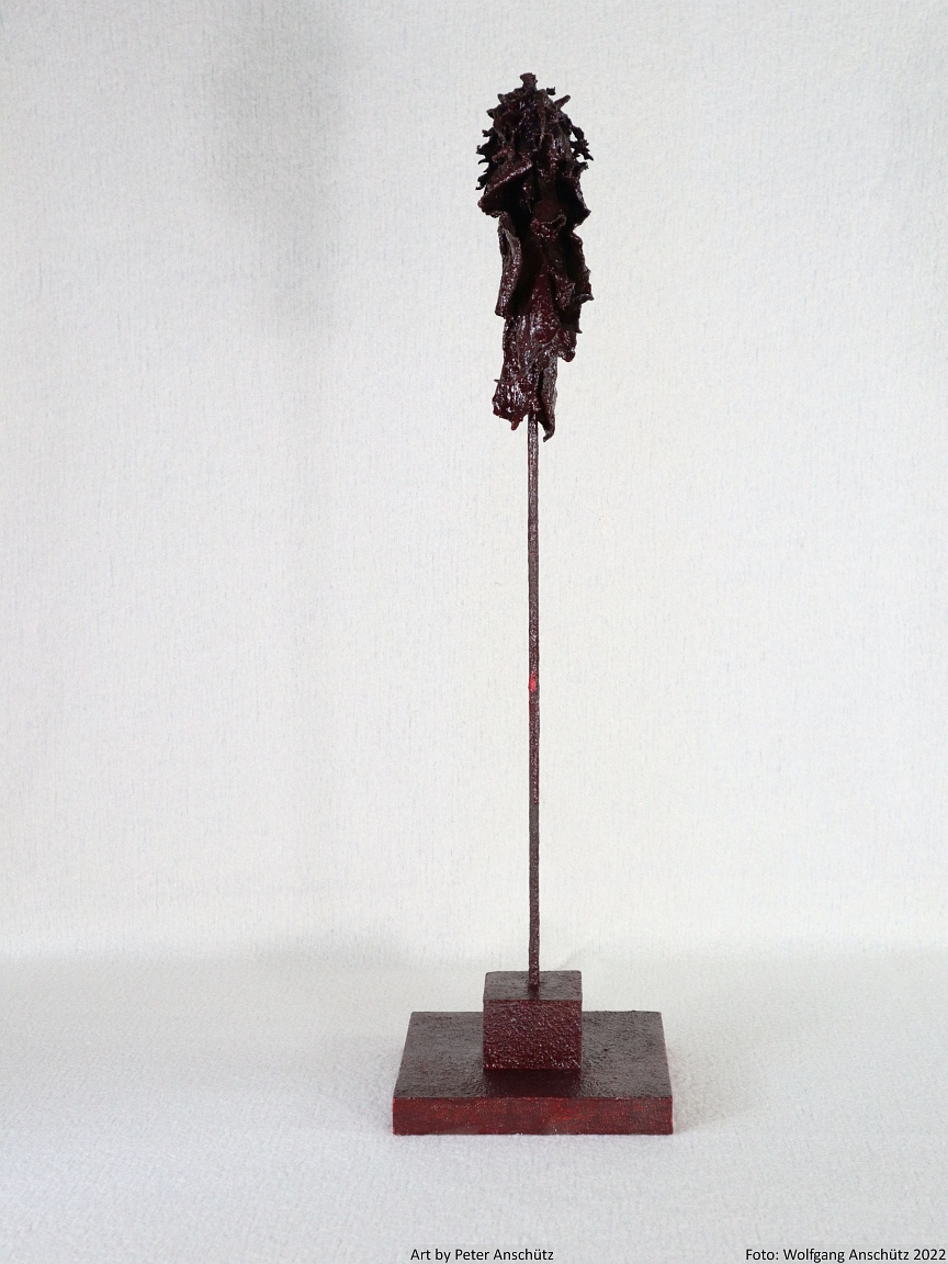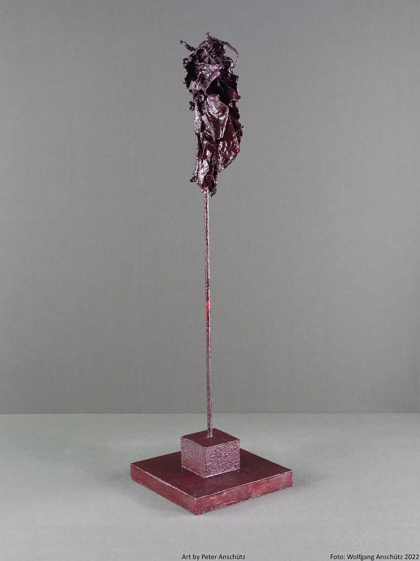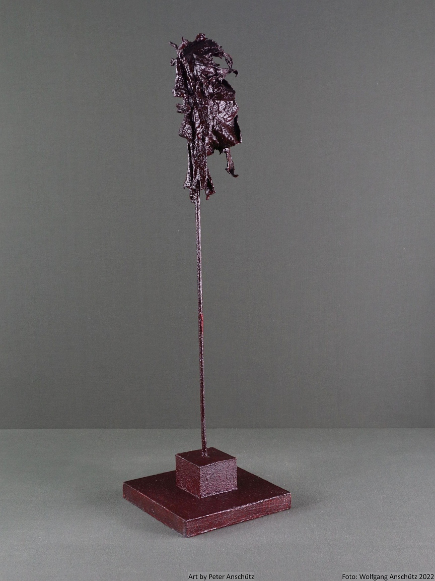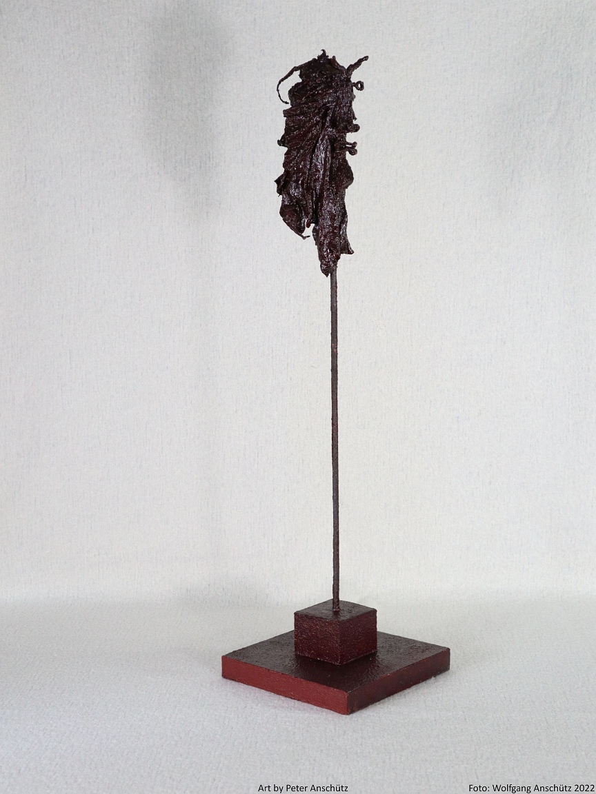 Holz, Eisendraht, Gazegewebe mit Acrylfarbe versteift