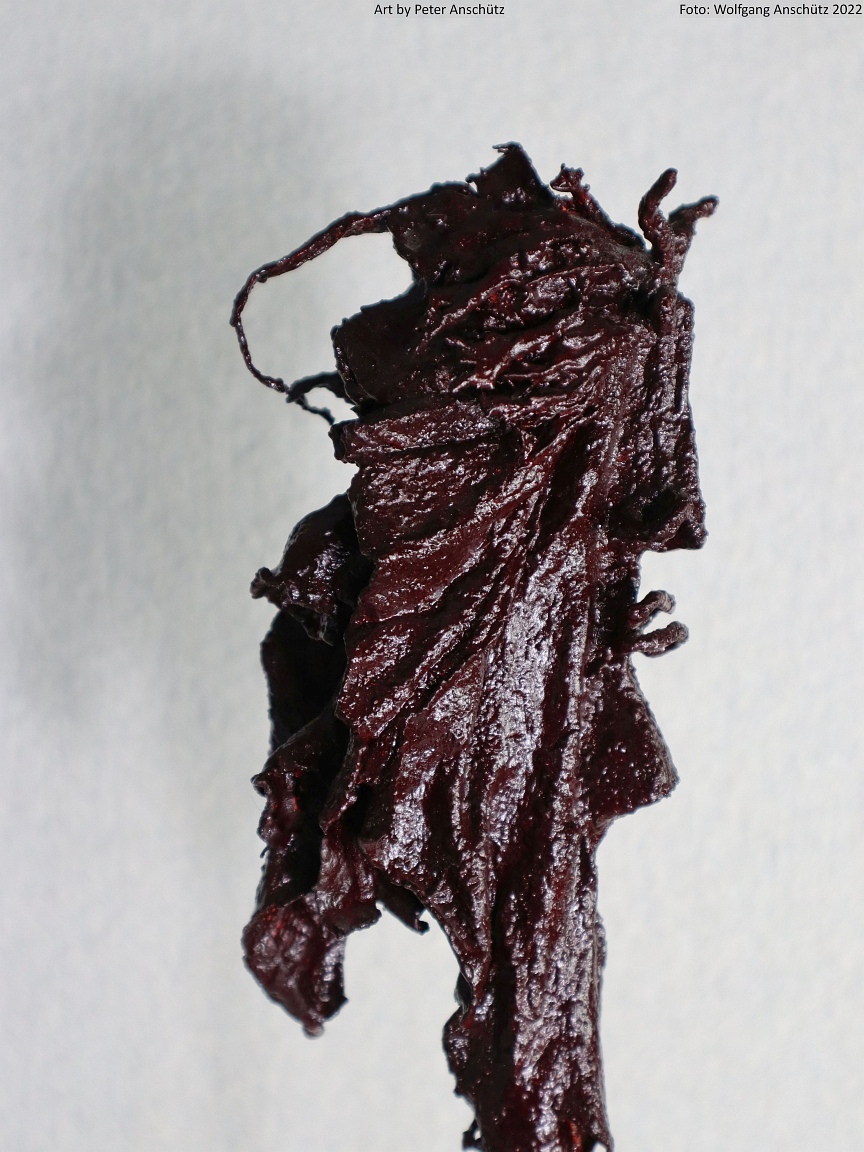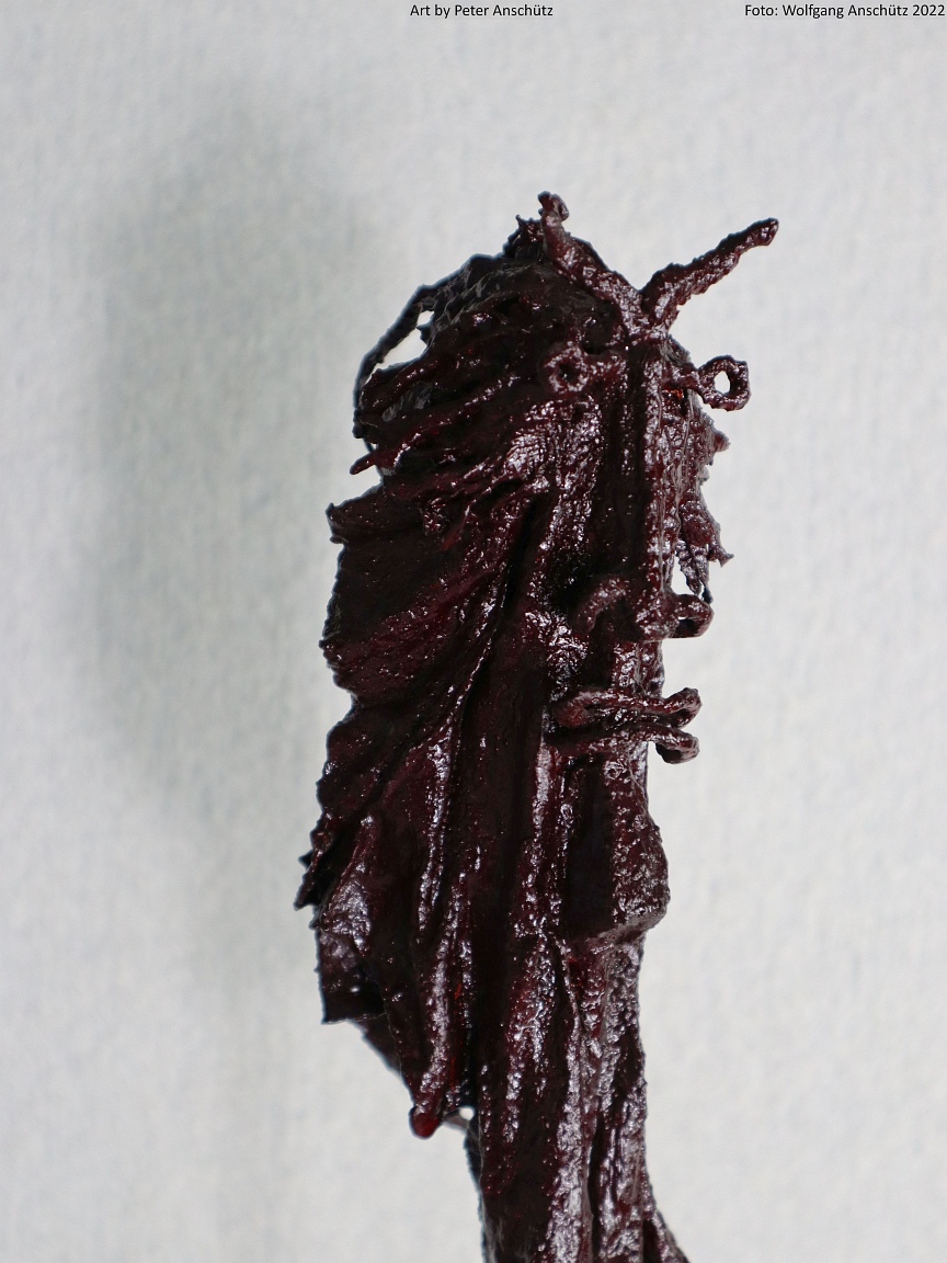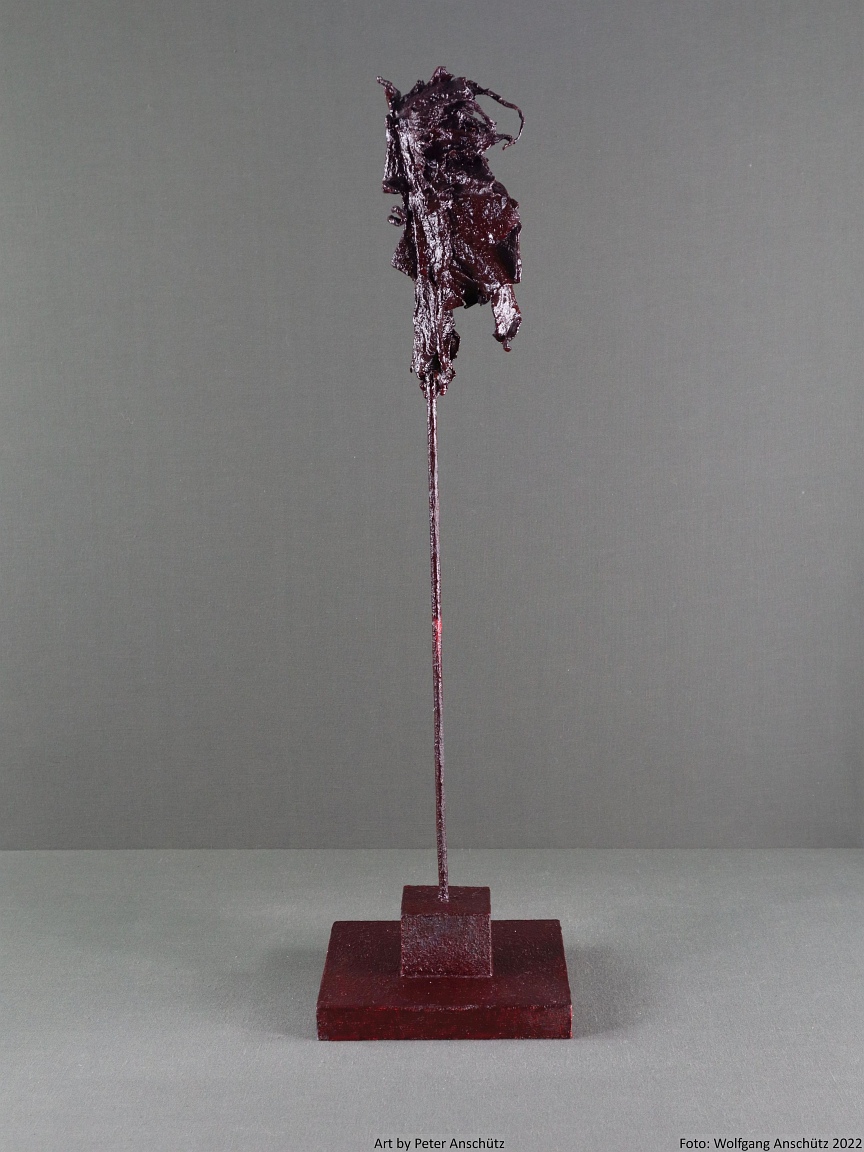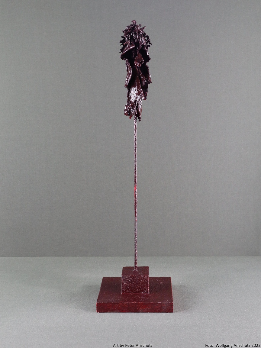 Holz, Eisendraht, Gazegewebe mit Acrylfarbe versteift