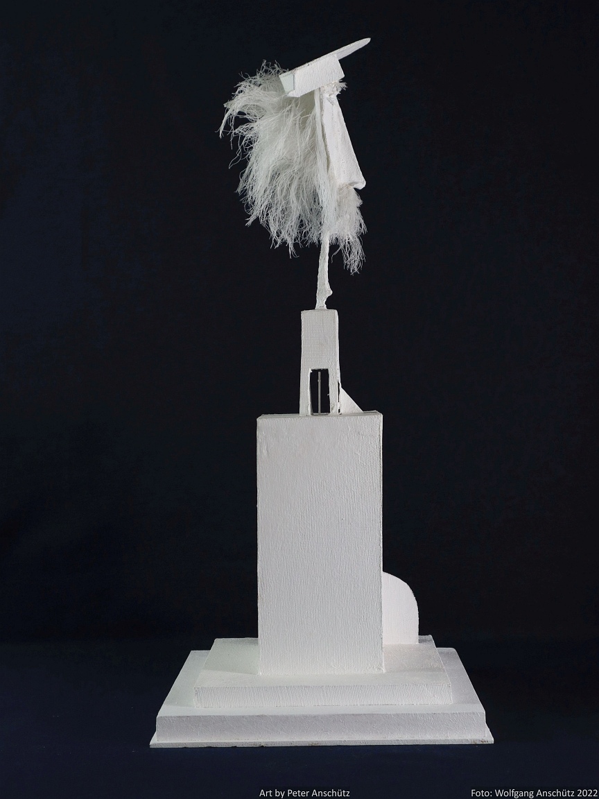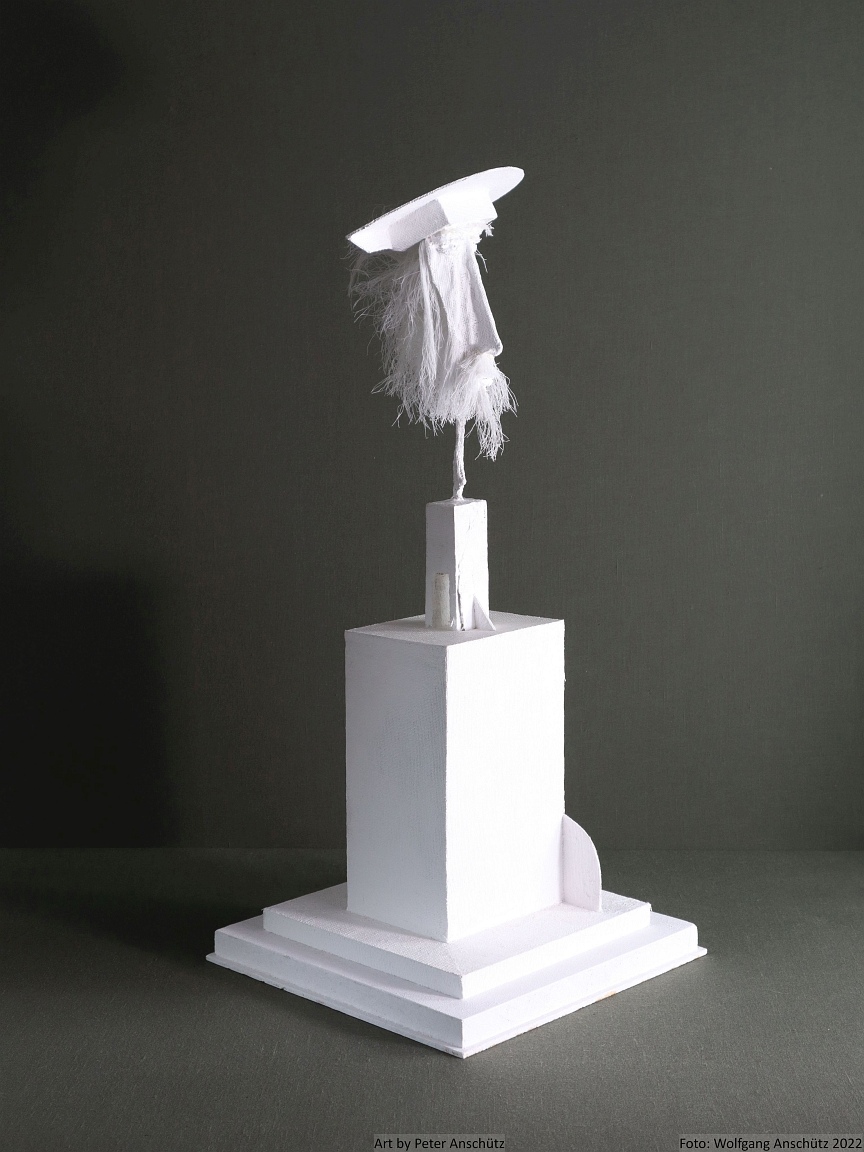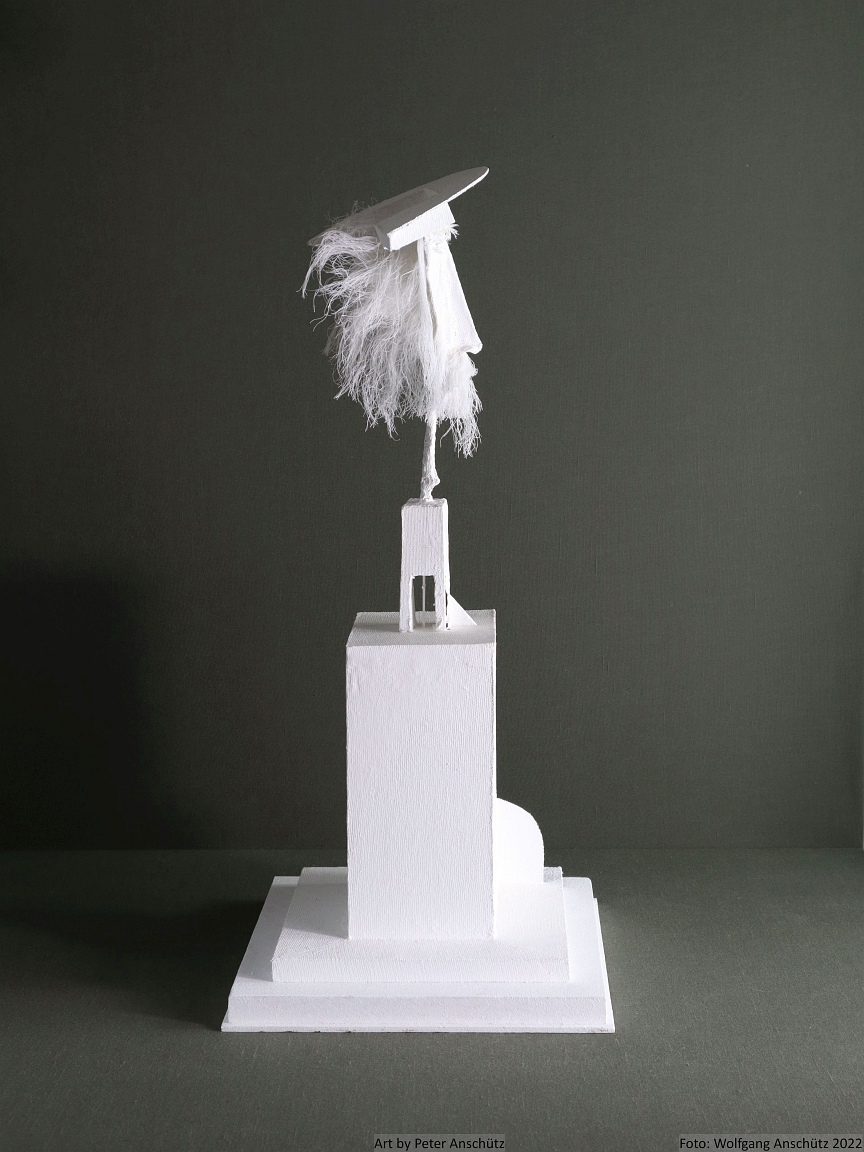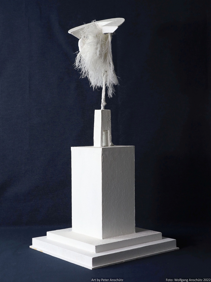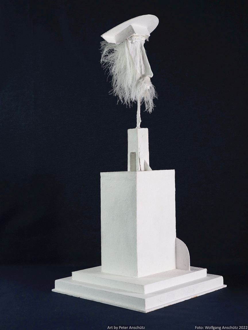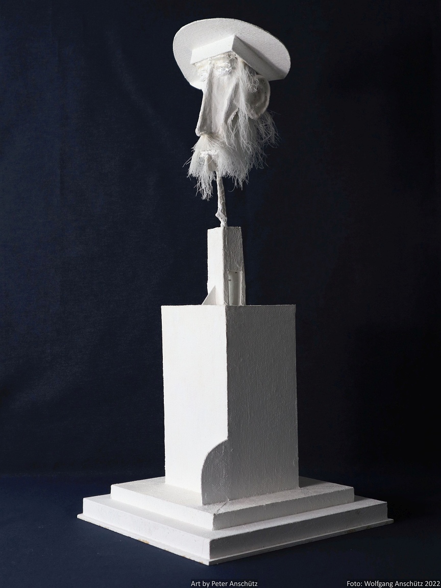 Holz, Eisendraht, Gazegewebe mit Acrylfarbe versteift