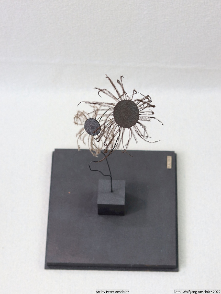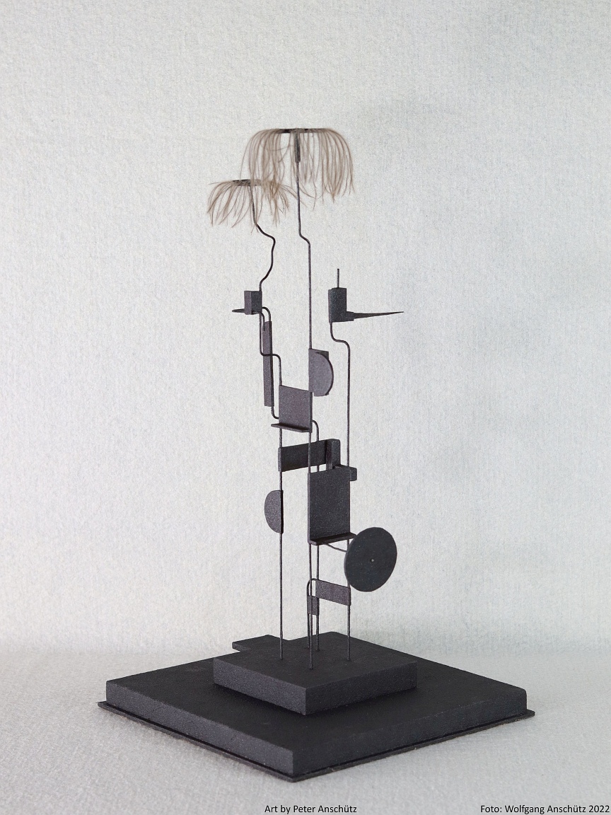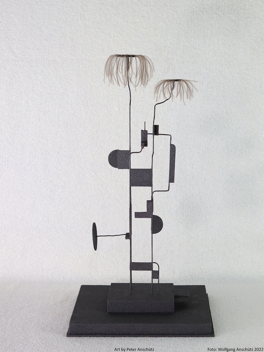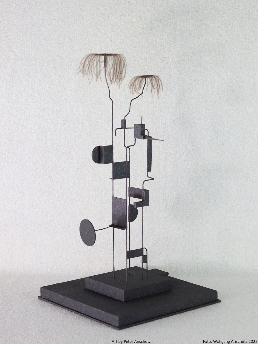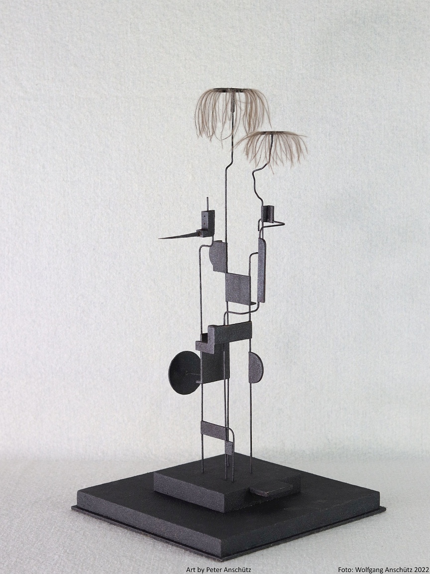Holz, Eisendraht, Straußenfedern