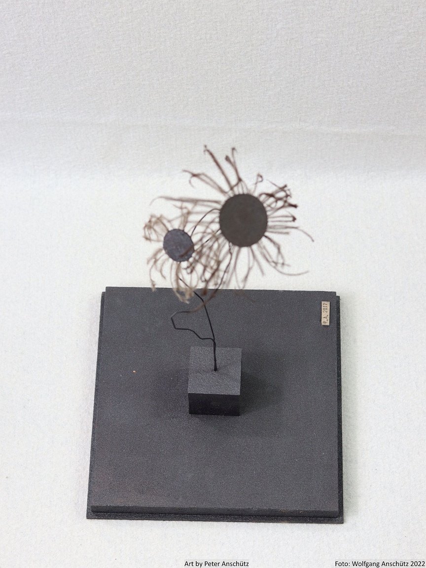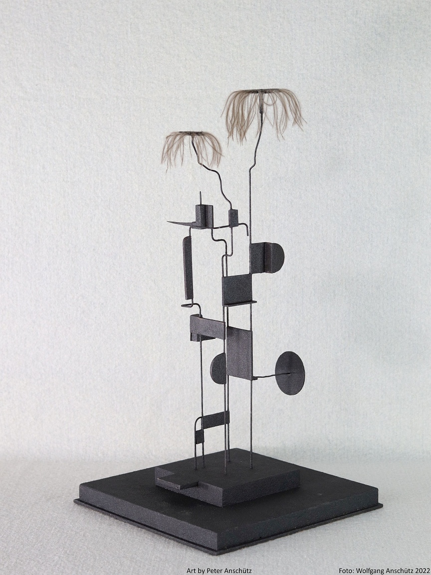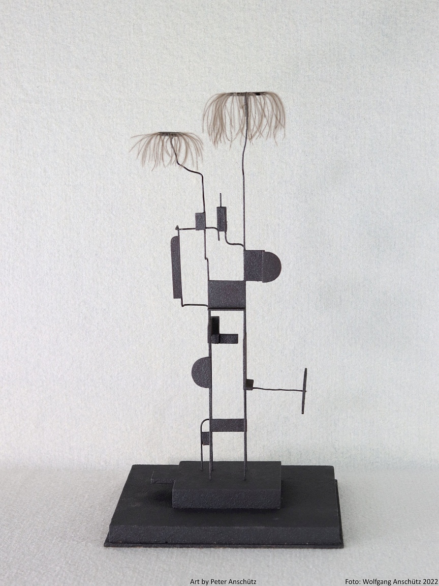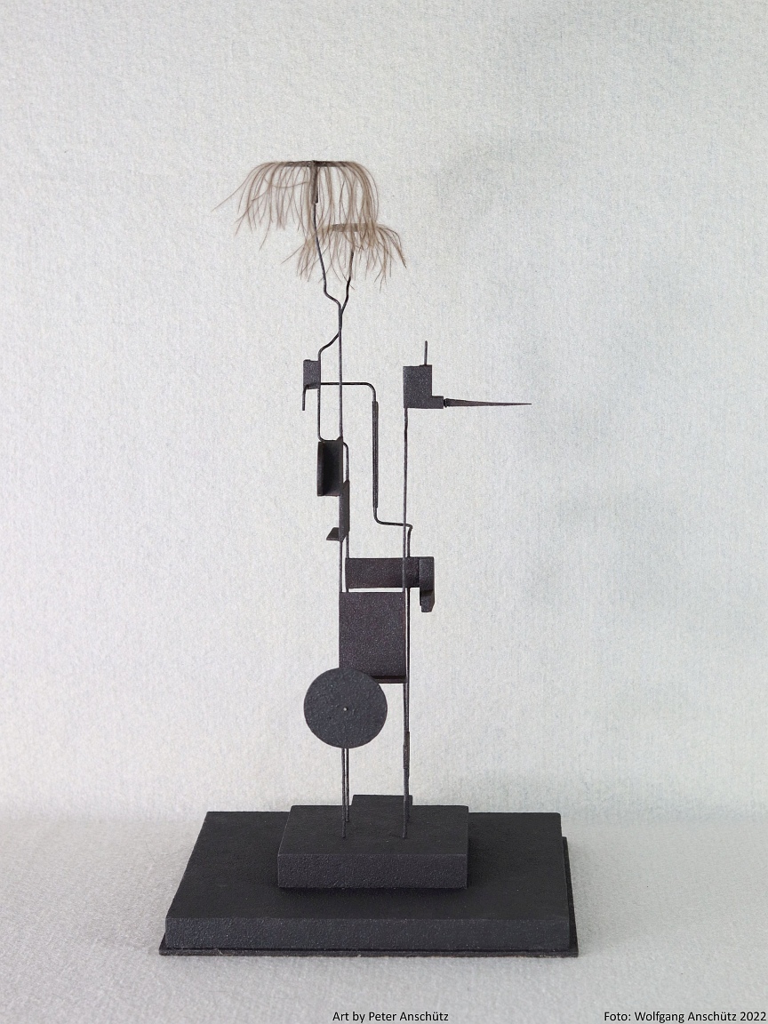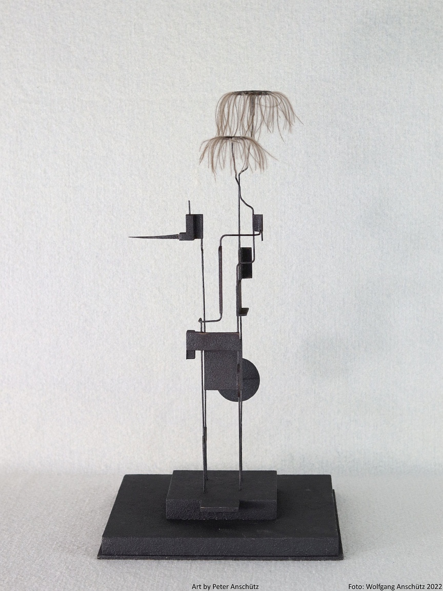 Holz, Eisendraht, Straußenfedern