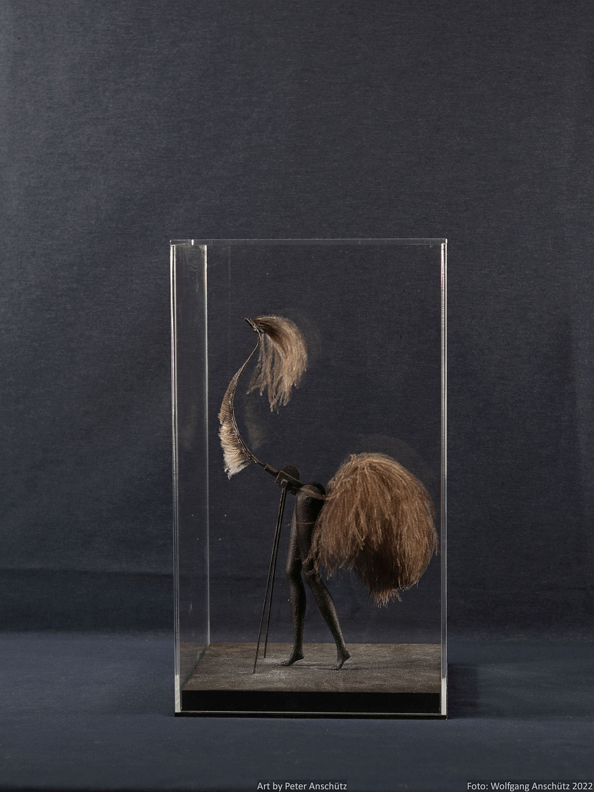 Holz, Kunststoff, Straußenfedern